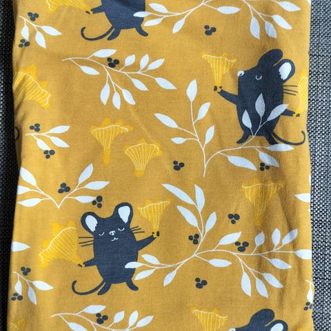 Paapiin kangas. Mittoja kuvissa. Keskellä taitteen kohdalla myymälässä auringossa haalistunut viiru koko kankaan matkalta.