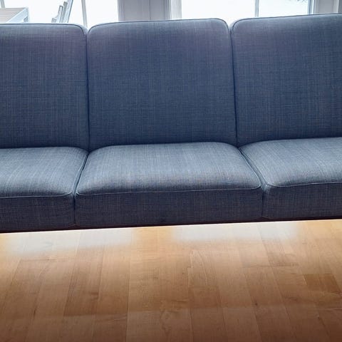 Tukeva sohva vahvalla kankaalla.istuin syv.50cm. Istuin kork. 43cm. Eläintalous.