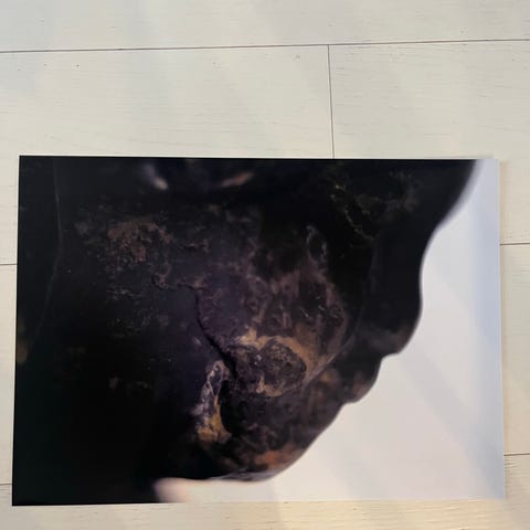 Valokuvataulu, jossa on kasvokuva vaakasuunnassa. Kuva on sävyltään ruskeasävyinen ja siinä on vaaleanpunaisia korostuksia kasvojen yläpuolella. Sopii sisustuselementiksi esimerkiksi lastenhuoneeseen tai oleskelutilaan.
