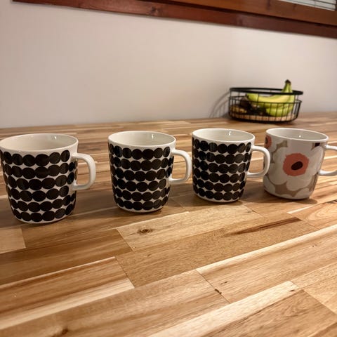 Uudenveroiset ja todella siistikuntoinen mukit. Todella vähän käytetty jos ollenkaan. Lamppu tekee kellertävän varjon ei ole tummentumia sisällä. Myynnissä myös muualla. Nouto Kuusankoskelta myös mahdollista. Tai kulkeutuu omien menojen mukana Tampereelle ja Helsinkiin.