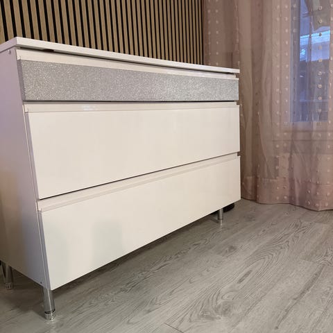 Kotimainen Sound pieni laatikosto toimii hyvin yöpöytänä tai pienenä säilytyskalusteena. Tuote on valmistettu korkealaatuisesta E1-luokan MFC kalustelevystä. Lipastossa on kuulalaakeroidut metallikiskot ja laadukkaat ABS-reunanauhat. Upean kokonaisuuden täydentää kromatut vetimet. Harmaa woodline kuvioitu kansi, runko valkoinen.