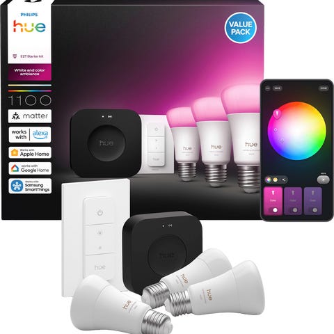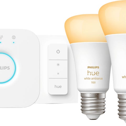Tämän aloituspakkauksen avulla aloitat Philips Hue -järjestelmän rakentamisen. Pakkaus sisältää kaksi E27-älylamppua, jotka tuottavat yli 16 miljoonaa värisävyä ja säädettävän valkoisen valon, sekä Hue Bridgen.