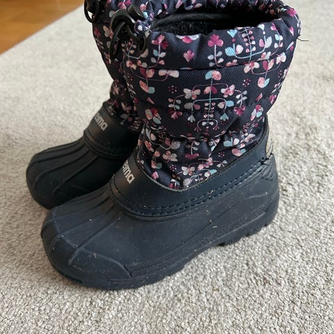 Erittäin hyväkuntoiset Reiman mustat loskarit. Sisällä lämmin vuori, erinomaisessa kunnossa, vain tyypillisesti pientä nukkaa. Aavistus käyttölikaa pinnassa. Testattu vedenpitäviksi juoksevan veden alla.