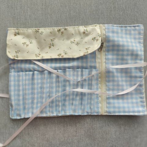 Käsintehty raffiakosmetiikkapussi (18 x 27 cm)