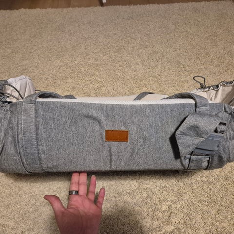 Myydään hyväkuntoinen Najellin sleep carrier vol 3. Väri harmaa, turkooseilla yksityiskohdilla. Mukana kosteussuoja.