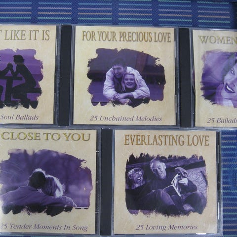 Myydään love kokoelma cd-levyjä 3,00 euroa kappale. Kaikki cd:t kuunneltu ja todettu toimiviksi. Cd:ssä voi olla naarmuja & kansipapereissa jälkiä/omistuskirjoituksia, mutta cd-kotelot ovat ehjät. Postituskulut ostajalle ja noutokin sovittavissa.
