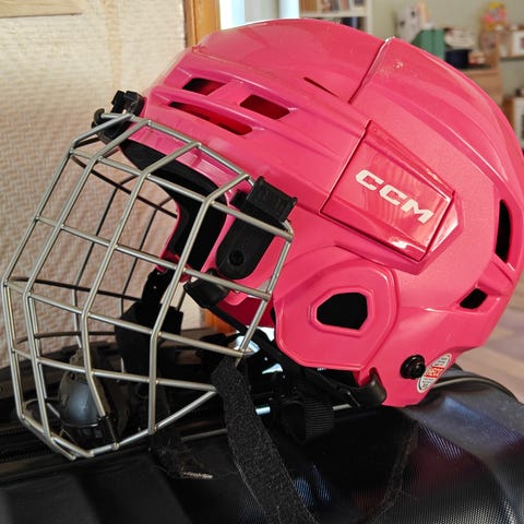Pieni CCM Tacks 70 jääkiekkokypärä valkoinen. Kypärässä on säädettävä kuori, leukahihna ja pehmustettu sisäosa. Sopii jääkiekkoon ja muuhun luisteluun, jossa tarvitaan pään suojausta. CE-hyväksytty kypärä, jossa takana mallimerkintä Tacks 70 ja sertifiointitarrat.