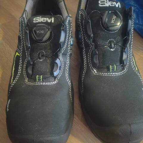 Sievi turvakengät koko 40. Mustat, nauhoilla ja vetoketjulla varustetut kengät. Päällinen sileää materiaalia, kumipohja karkean kuvioinnin ansiosta pitävä. Sopivat esimerkiksi työ- tai arkikäyttöön ulkona ja sisällä. Käytetty vain kerran.