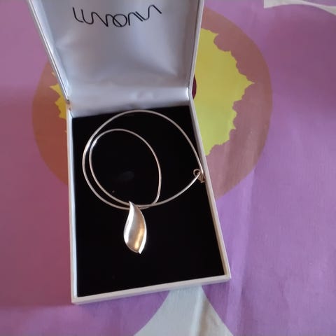 Lumoava kaulakoru Alma. Hopeaa. Riipuksen keskellä pinkki zirkoni. Pituus 45/50 cm. Leimat LU ja 925. Siisti ja ehjä. Nouto tai postitus, postikulut ostajalle.