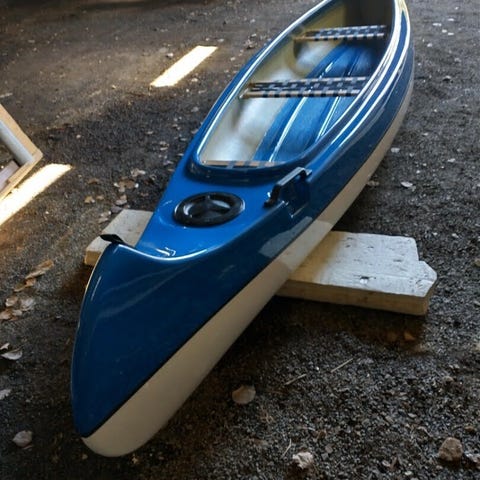 Alle 30 kiloa painava näppärän kokoinen avokanootti.