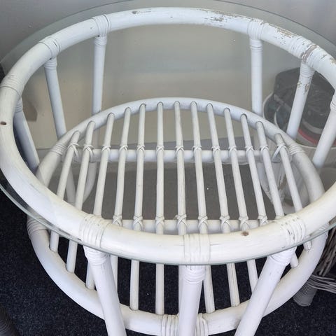 Kuvassa olevat tumman harmaat, tukevat tuolit pehmusteineen ja viltteineen yhteensä 50€ ja valkoinen pöytä 10€ noudettavissa Tampereen Kalevasta. Kaikki muuten tukevia ja siistejä, mutta pöydän pinnassa sekä tuoleissa näkyy käytön jälki. Pehmusteet uudet sekä viltit siistit.