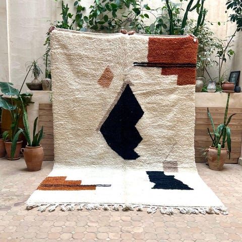 Graafinen ja tyylikäs käsinsolmittu marokkolainen matto. Tuuheaa ja paksua lampaanvillaa, linjakas design ja maanläheiset sävyt. Matto on käyttämätön ja juuri pesty valmistuksen jälkeen. Marokkolaisten berberinaisten tekemä taideteos Atlas-vuoristossa kollektiivissa. Koko 325x215cm+ hienot lettihapsut perinteen mukaan toisessa päässä. Matto sopii hyvin pohjoismaiseen tyyliin, ja isommalle seinälle sen voi ripustaa jopa seinätaideteokseksi.