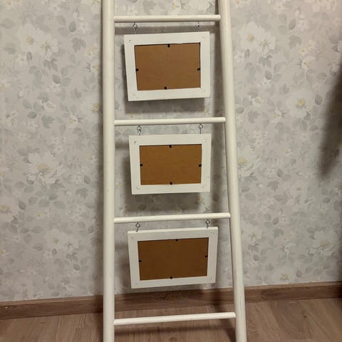 Myydään valkoiset koristetikkaat. Mitat: 170cm pitkä, leveys alaosa 54,5cm yläosa 33,5cm. Toisella puolella sekä sivussa halkeamia, ei vaikuta käyttöön (kuvat). Sisustustikkaat, koristetikapuut.