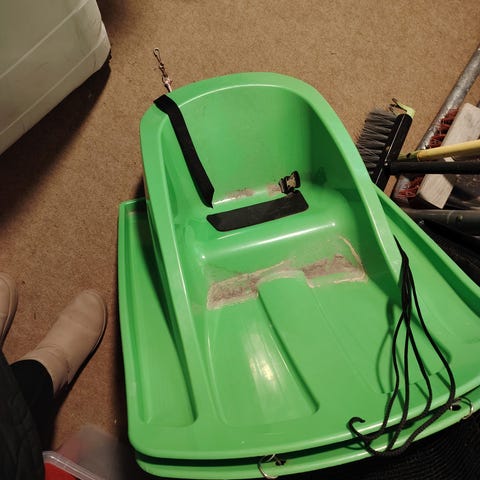 Seuraavalle kiertoon. Torin kautta saatu edellisestä perheestä ja nyt taas seuraavalle käyttäjälle vapaa. Tuunattu vetonaru koska edellinen katkesi ja lisätty puuttuneen turvavyön tilalle tuommoinen liinaremmi.
