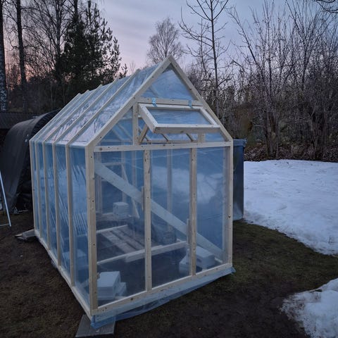 Lisävarusteina kasvihuoneeseen on saatavissa automaattisesti avautuvia kattoikkunoita ja lisätukia talven tuentaa varten.