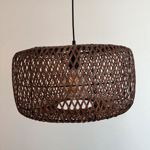 Ikean Sinnerlig, bambu kattovalaisin, halk. 28cm, kork. 30cm. Sisältää myös kattoripustimen ja kattokuvun, johdon pituus 150cm. Saatavana 2kpl, mutta myyn myös yksittäin. Yhden hinta 20€.