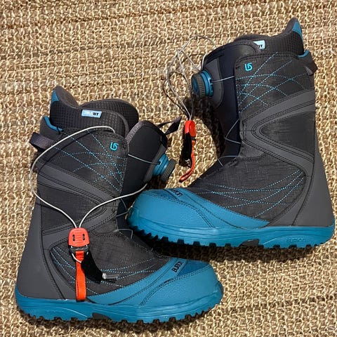Naisten Burton Step on lumilautakengät koko 41. Tarkempi malli Ritual, edessä ja sivulla Boa-kiristys. Sivulla olevien Boa-mekanismien kiinnitystä vahvistettu suutarilla edellisen omistajan toimesta ja lisätty nahkavahvisteet (kuvat). Toimii moitteettomasti.