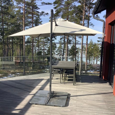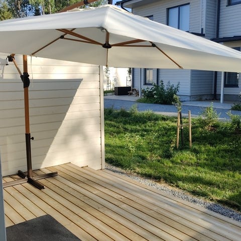 Iso ja laadukas Brafabin varjo. Ostettu Vepsäläiseltä ~1000€. Tukevat marmoripainot. Kangas vaatii pesun. Siisti ja ehjä. Nouto Soukanniemestä.