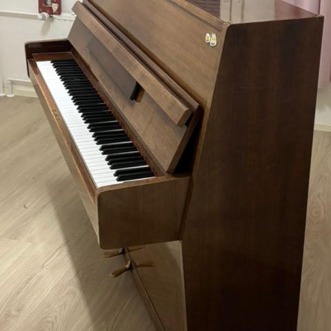 Baldwin pystypiano puuviimeistelyllä. Pianossa on suljettava kansi ja koristeellinen nuottiteline. Sopii kotiin tai harjoittelukäyttöön. Vaatii useamman virityskerran.