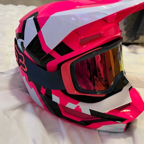Fox V1 motocross-kypärä koko L. Pinnassa pientä kulumaa/naarmuja.