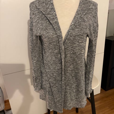 Myydään avoin, pitkä neuletakki kahdella taskulla ja isolla hupulla. Neuletakin koko on xxs, mutta sopii myös xs.