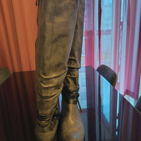 Naisten uudet saappaat. Vetoketju sivulla.