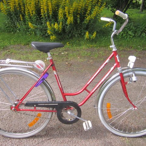 Siisti naisten pyörä. Lukko, etukori,seisontatuki.