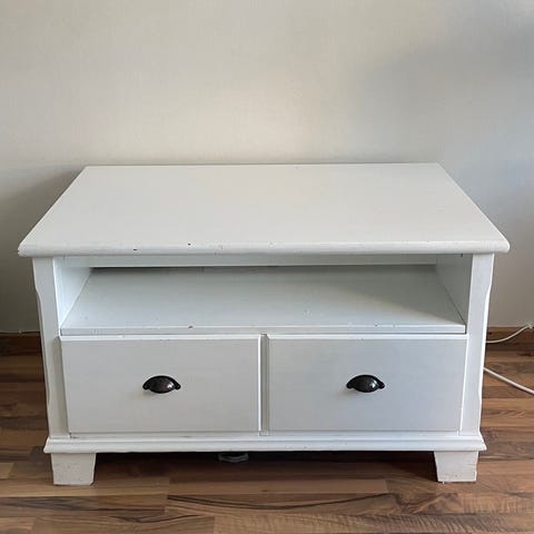 Gubi tv-taso puuta. Kaareva, matala taso, jossa useita avohyllyjä ja keskellä kaappiovet. Soveltuu television ja viihdelaitteiden sijoittamiseen sekä säilytystilaksi olohuoneeseen.