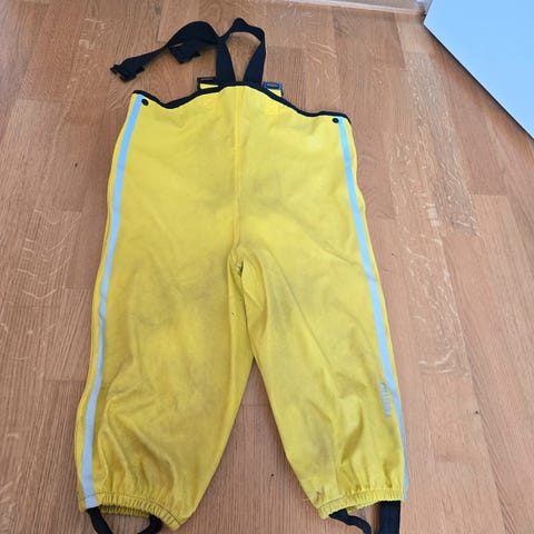 Nordbjorn sadevaatesetti jossa sadetakki sadehattu ja sadehousut ja kurahanskat. Kurahanskat kaupan päälle eivät pidä enää täysin vettä näitä eniten käytetty. Muut hyvässä kunnossa toki jotain pientä käytön jälkeä voi olla mm. Tummentumaa jossain. En ole huomannut että vuotaisivat mistään. Koko 86/92. Mukaan myös Reiman vaaleanpunaiset kurahousut koko 86 mutta reiluhkot ja samaa kokoa toisten housujen kanssa. Näissä pienet moitteet jalkalenkki nappien kiinnityksissä. Katso kuvat. Jalkalenkit puuttuvat näistä.