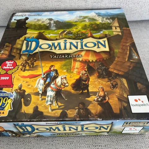 Myydään uuteen kotiin Dominion -valtakunta peruspeli uusien pelihankintojen luoman tilan puutteen vuoksi. Peli hyvässä kunnossa ja kaikki kortit tallessa.