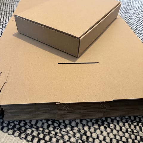 Postituslaatikoita, kuoria ja pusseja sekä silkkipaperia.