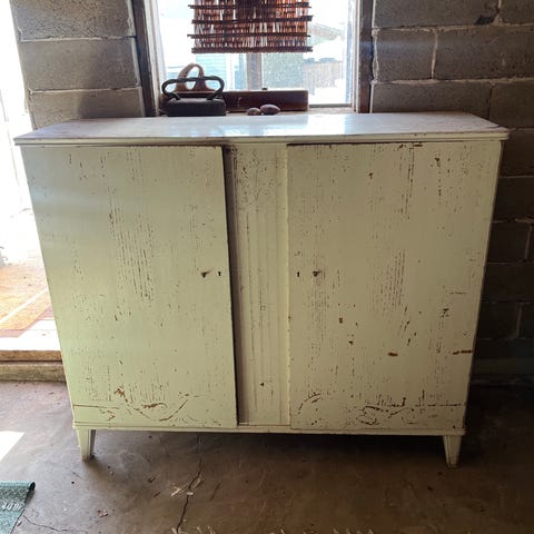 Kaunis, Ylivieskan puuseppien valmistama astiakaappi. Pieni tummunut jälki (ks.kuva), muuten moitteeton kunto.