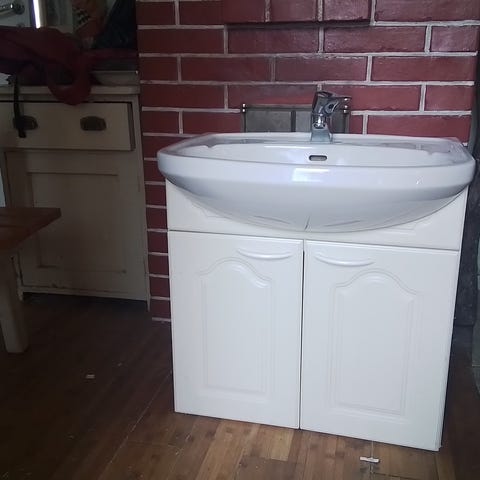 Myydään hyväkuntoinen allaskaappi, allas ja hana. Altaan reunasta ihan pieni pala irronnut. Leveys 90 cm. Syvyys 50 cm.