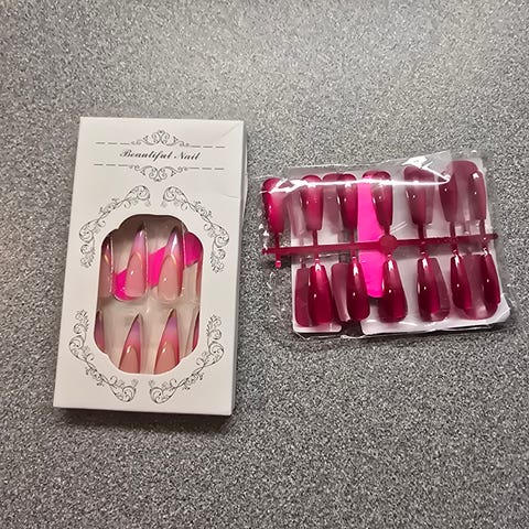 Kauniit kimaltavat tekokynnet joissa liima valmiina.