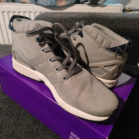 Adidas talvikengät, koko 43. Varren pituus nilkkamittainen. Väri musta harmailla yksityiskohdilla ja vaalealla pohjalla. Nauhakiinnitys. Sopivat viileämpiin keleihin ja arkikäyttöön.