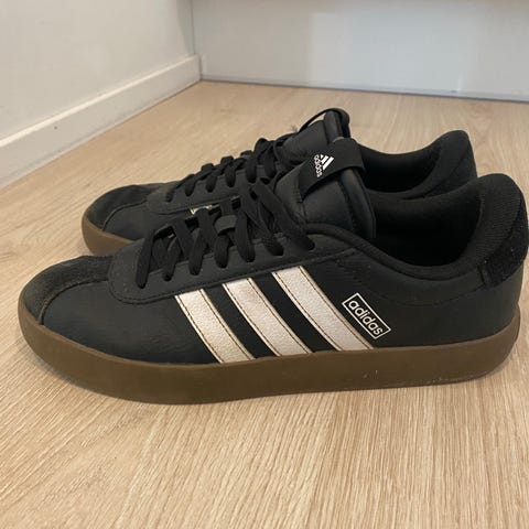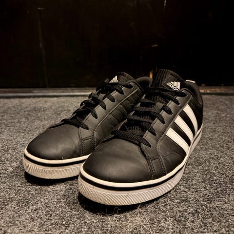 Adidas tennarit, koko 43. Väriltään harmaat, nauhakiinnitys ja nilkkapituiset varret. Pohja vaalea ja kuvioitu paremman pidon takaamiseksi. Soveltuvat arki- ja vapaa-ajan käyttöön.