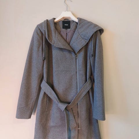 Master Coat villakangastakki, harmaa, naisten koko 38. Takki on pitkä ja suoralinjainen, edessä piilokiinnitys ja kauluksessa kauluskäänteet. Materiaalikoostumus: päällinen 35 % uutta villaa, 63 % viskoosia ja 2 % elastaania. Vuori 52 % polyamidia ja 48 % asetaattia. Sopii käytettäväksi muuna naisten ulkovaatteena viileämpiin säihin.