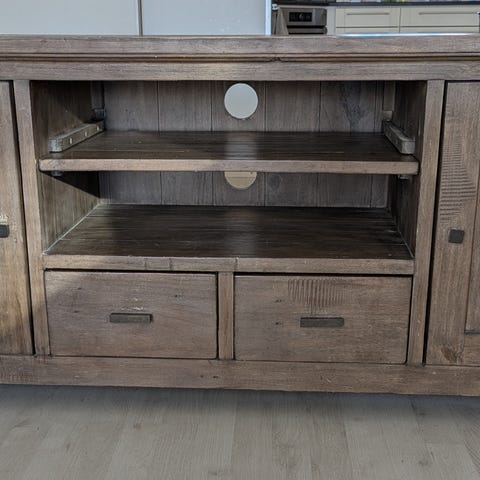 Tv-taso ja senkki, tumma puu. Myydään yhdessä tai erikseen.