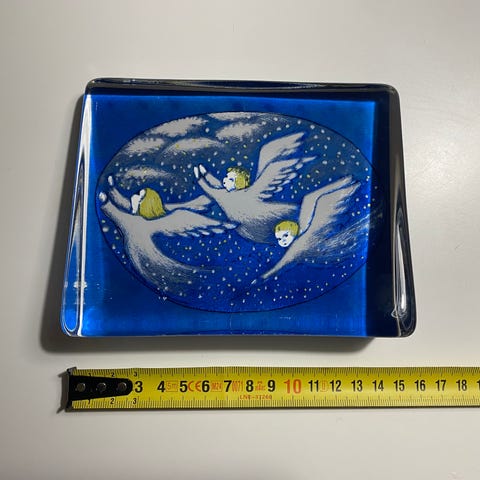 Heljä Liukko-Sundströmin lasikortti Suomenlippu koriste-esine. Uutta vastaavassa kunnossa. L 7,5cm x K 6,0cm.