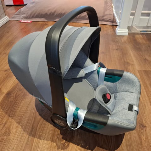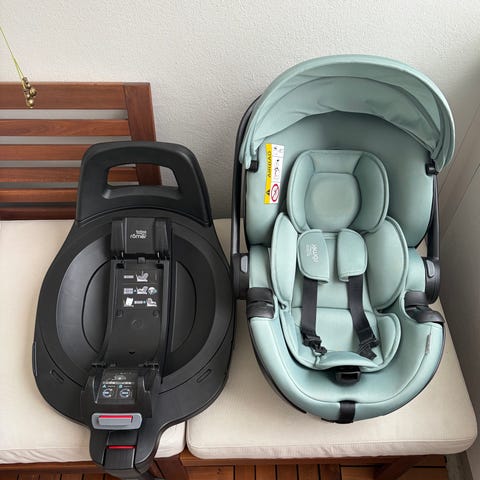 Vauvan turvakaukalo ja telakka. Turvakaukaloa ei ole juuri käytetty: on ollut toisen kaukalon rinnalla satunnaisessa käytössä. Turvakaukalo on valmistettu vuonna 21. Tämän kanssa on tehty yksi kesälomareissu. Pakettiin kuuluu britax flex base isense telakka, joka on kääntyvä! Siisti kaukalo ja telakka seuraavalle vauvalle.