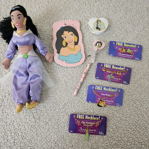 Myydään kuvassa näkyvät lelut; Aladdin ja Lampun henki. Elokuvassa Lampun henki taisi olla sininen. Kunto näkynee kuvista. Nouto tai postitus.