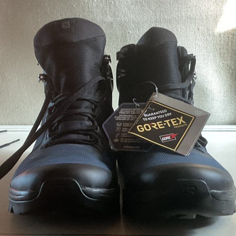 Salomon vedenpitävät talvivaelluskengät, koko 40. Kengät ovat korkeavartiset ja väriltään mustat, joissa on violetit nauhat ja nauhalenkit. Päällismateriaali on synteettinen ja kengissä on aerotherm aerogel -eristys, joka on suunniteltu pitämään jalat lämpiminä. Kengissä on karkea kumipohja, joka tarjoaa pitoa vaellukseen ja ulkoiluun. Vuori on pehmeä ja nilkkaa tukeva, mikä tekee kengistä sopivat retkeilyyn ja muuhun ulkoilukäyttöön kylmissä olosuhteissa. Käytetty alle 10 kertaa.