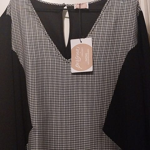 Hihoissa sekä mekon yläosassa kukkakuviointia,muutoin ruutukuviointia