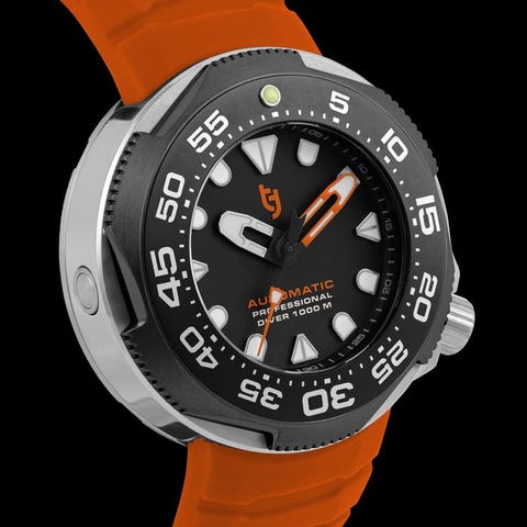 Tecnotempo on italialainen brändi ja rekisteröity tavaramerkki.Tecnotempo on Italian brändi, joka yhdistää laadun ja muotoilun jokaisessa kellossa niille, jotka arvostavat ajattoman tyylin.Jokainen malli, korkealaatuisista osista valmistettu, edustaa täydellistä kohtaamista perinteen ja innovaation välillä niille, jotka elävät aikaa tyylillä.Tässä huutokaupassa tarjoamme:Tecnotempo Automatic Diver's 1000M Limited Edition 200PCSKotelo Ø 46mm (mitä kruunua ei lasketa) ja paksuus 16,5 mmUusi, tagin, laatikon ja 2 vuoden virallinen takuuTecnotempo-kellon valmistuksessa käytettiin ensiluokan komponentteja:316L ruostumattomasta teräksestä kotelo mustalla PVD-käsittelylläLuotettava japanilainen automaattinen Seiko nh35 -liike (24 jalokivellä, 41 tunnin virrankesto maksimikytkennällä)Yksisuuntainen bezelSininen kellotauluAutomaattinen Helium Release Valve (helmi vapautus)SafiirilasiMusta kumi- hihnaRuuvikantainen kruunuKotelon halkaisija: 46mm (ilman kruunua)Kotelon paksuus: 16,5 mmHihnan leveys: 24mm - 22mmVesitiiviys: 1000 metriä (100 ATM)Kellon ympärysmitta on noin 23 cmPaino: noin 165 gLaatikko, yleiskäyttöohje (englanti/italia), 2 vuotta virallinen takuuTavarat pakataan huolellisesti ja lähetetään Italiasta kuriirin toimesta (seurattavissa ja vakuutettu)