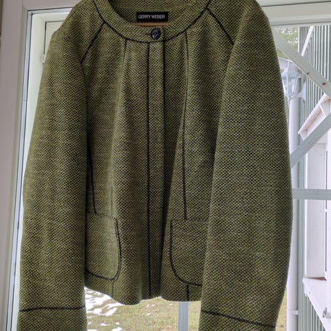 Gerry Weber farkkuhame naisille, koko 46. Sininen denim-materiaali, jossa kevyt kulutuspesu ja hillitty kuviointi. Perinteinen viisitaskuinen malli, vyötäröllä vyölenkit ja edessä vetoketju- ja nappikiinnitys.