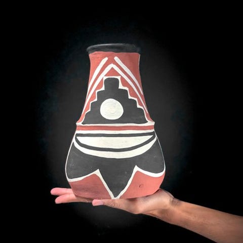 Käsin valmistettu terrakottamaljakko, valmistettu luonnollisesta savesta, lämmin maanläheinen sävy ja sileä, rustiikkinen viimeistely. Sen orgaaninen rakenne ja perinteinen muoto korostavat luonnollisten materiaalien kauneutta, ja se sopii sekä koriste-esineeksi että toimivaksi astiaksi kukille tai kasveille.Terrakottaruukut ovat klassinen, luonnollinen ilme, joka sopii monenlaisiin sisustustyyleihin sekä sisätiloihin että ulkotiloihin.NOIN MITATKorkeus: 40 cmLeveys: 26 cmHUOMAUTUS> Huomioithan, että nämä kuvat on otettu hämärässä studiossa, värit voivat vaihdella ympäristön mukaan.> MAINITTU PAINO SISÄLTÄÄ PAKKAUSMÄÄRÄN.TOIMITUS- Tuote lähetetään seurattavalla Track & Trace -koodilla DHL Parcelin, DPD:n tai PostNL:n kautta. Seuranta päivittyy Catawiki-erän tietoihin, kun lähetys on jätetty.- Tarkista säännöllisesti, jotta lähetyksesi ei palaisi meille; tällöin ostaja vastaa toisen lähetyksen toimituskustannuksista.- Seurantaa varten Espanjaan ja Portugaliin käytä tätä linkkiä ja lisää Catawiki-eräsi seurantanumerohttps://clientesparcel.dhl.es/LiveTracking/HomeEMME YHDISTÄ TOIMITUSTA!!!Jos sinulla on kysyttävää lähetyksestäsi, ota meihin yhteyttä Catawiki-viestisovelluksella. Yritämme vastata 3 arkipäivän kuluessa.