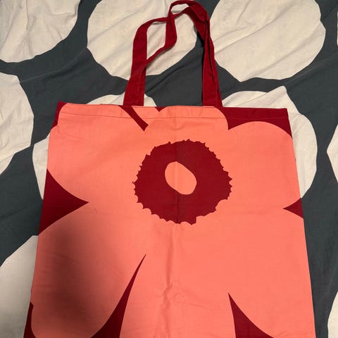 Marimekko punainen Unikko- kangaskassi, uusi ja käyttämätön.