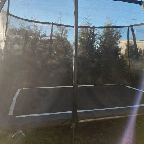 Ostetaan hyväkuntoinen trampoliini turvaverkolla ja tikkailla.