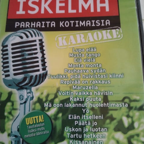 Iskelmä Hitti Karaoke DVD-levyt. Paketti sisältää kaksi karaoke-DVD-levyä, joissa on iskelmä- ja hittikappaleita kotikaraoken käyttöön. Formaatiltaan DVD, tarkoitettu karaokelaitteille tai DVD-soittimille, jotka tukevat karaokelevyjä. Yht.10e