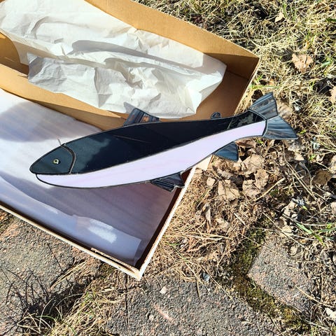 Messuilta ostettua kotimaista keramiikkaa olevat kalat. Korkeus n 9cm ja pituus n 13 cm. Yhteishinta 12€ , myyn myös yksittäin 2€ kpl